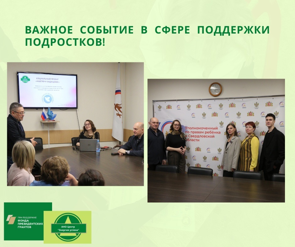 В ноябре на площадке уполномоченного по правам ребенка Свердловской области состоялась вдохновляющая встреча, объединившая представителей АНО Центр "Энергия успеха", детско-юношеских центров и клубов по месту жительства г. Екатеринбурга. Это событие стало важной вехой в совместной работе по созданию безопасной и поддерживающей среды для наших подростков.